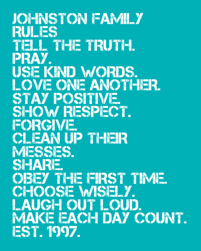 I am very excited today to share with you an exciting site that offers instant custom signs for your home. I was contacted by Andrea and asked to check out her "Customizable Family Rules Printable". I have been wanting to make one for so long now and just hadn't gotten around to it. So I was very excited to check it out! I immediately went to check it out.